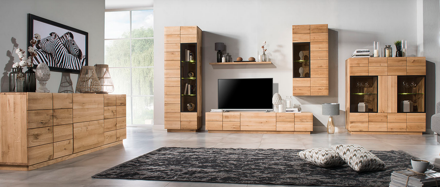 Jeżeli już mówimy o salonie to nie może w nim również mebli typu RTV, komoda oraz witrynka. Obowiązujące trendy zachęcają nas po sięganie po naturalne materiały, szczególnie pożądanym materiałem jest drewno. Dębowe meble wpasują się we wnętrze w każdym stylu. Posiadają one wiele zalet, wśród których wymienić można trwałość, odporność na uszkodzenia czy możliwość odnowienia mebli nawet po wielu latach. Dla większości osób decydujący jest jednak fakt, że meble z litego drewna stanowią niepowtarzalną, naturalną ozdobę każdego wnętrza. Codzienny kontakt z prawdziwym drewnem to najlepszy sposób na dobre samopoczucie. Nie ma aranżacji, w której nie sprawdziłyby się meble z litego drewna – nawet jeśli jest bardzo nowoczesna i minimalistyczna.