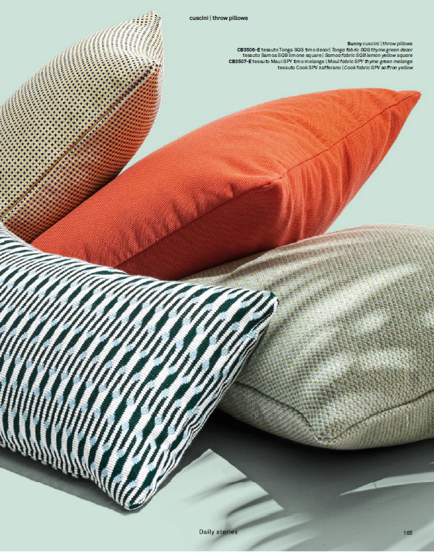 Dywan jak i poduszki są wykonane z materiałów które nie przyjmują wilgoci, dzięki czemu bezpiecznie mogą leżeć na świeżym powietrzu.