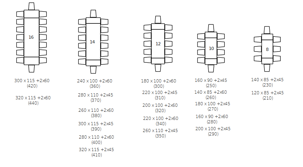 Zastanawiałeś się jaką powierzchnie powinien mieć stół aby mogła zasiąść przy nim odpowiednia ilość gości? Na poniższych grafikach podpowiemy Ci jakie są zalecane wymiary stołów dla danej ilości osób.