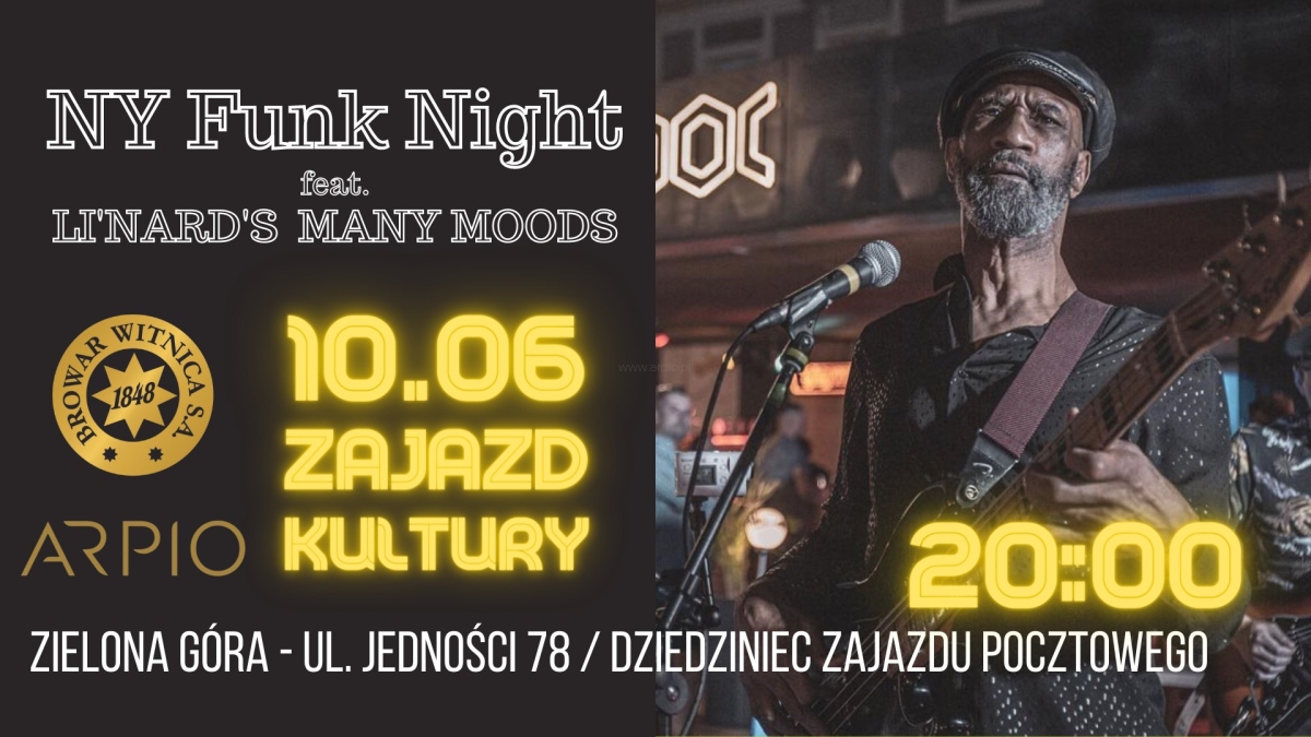 Gramy razem! Browar Witnica S.A. oraz najlepszy salon meblowy w ZIELONEJ Górze ARPIO LEDER Patronami koncertu 10.06 NEW YORK - FUNK NIGHT! Li’Nard's Many Moods
