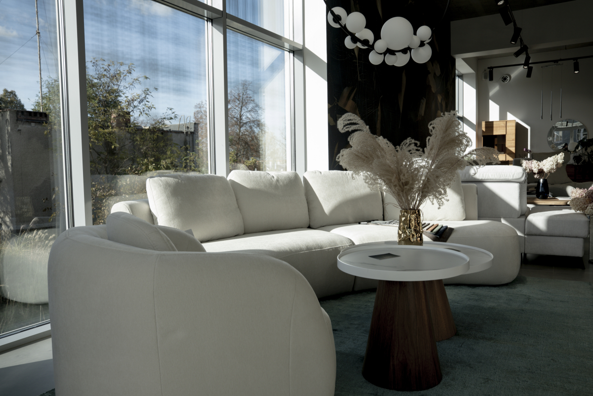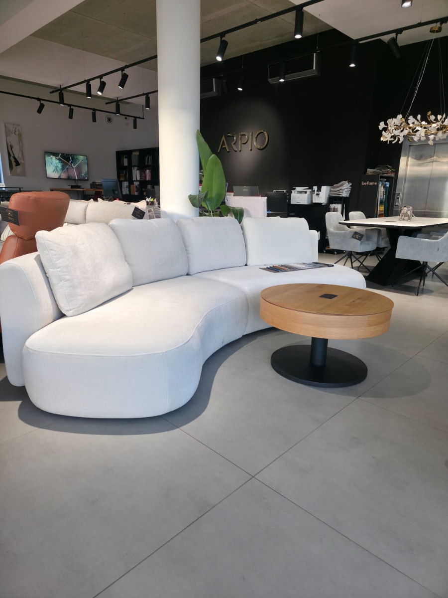 Nowoczesny model o wyraźnie zaokrąglonych formach – składa się z modułów prostych oraz „fasolkowych” modułów w kształcie wygiętych brył. Możliwość komponowania różnorodnych układów: klasyczna sofa, narożnik typu L, półokrąg.