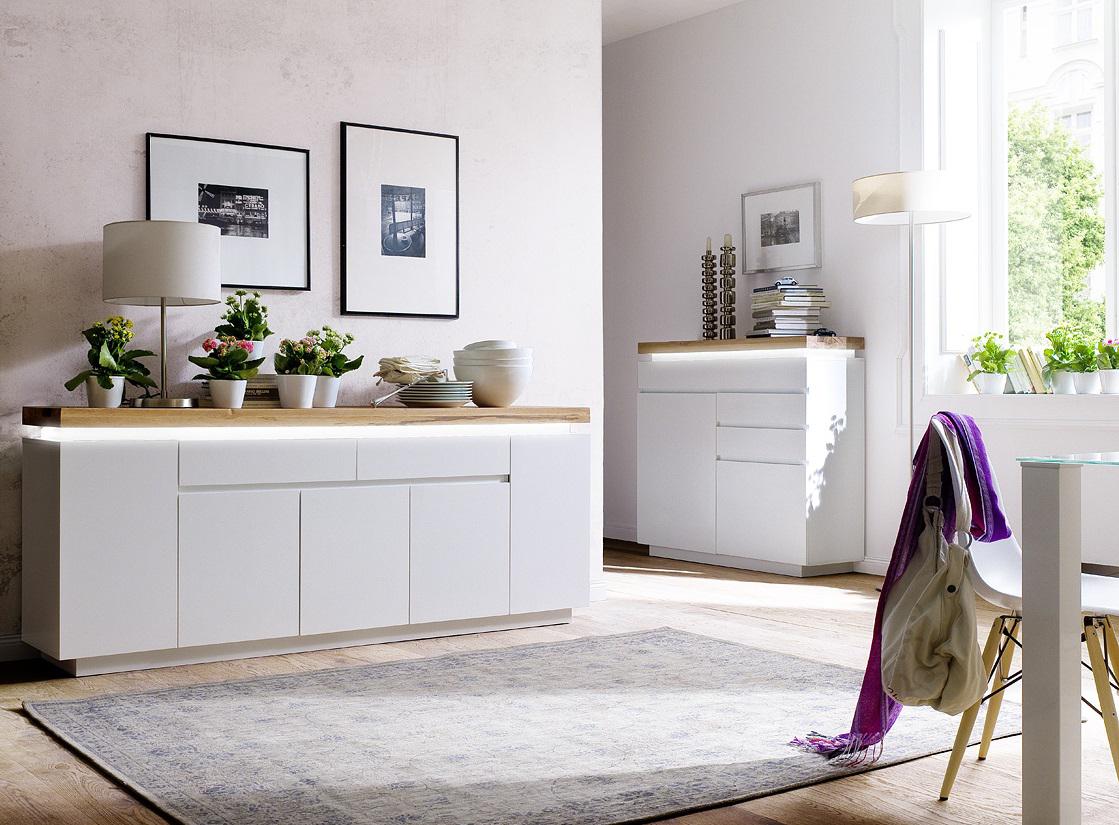 Romina - eine Kommode mit Beleuchtung und einer massiven Eichenplatte