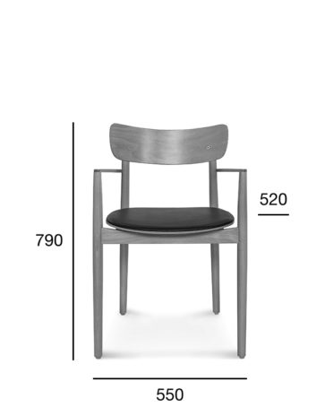 550x520x770h, Sitzhöhe 400/420, Armlehnenhöhe 610 [mm] - hart oder mit gepolstertem Sitz - Option 1; gepolsterter Sitz und Rückenlehne - Option 2.