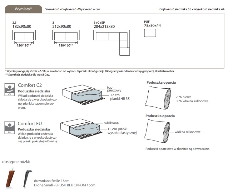 Verfügbare Versionen: - NACHT - viele kleine Rückenkissen, - TAG - Rückenkissen mit der Breite der Sitzkissen.