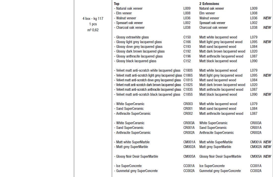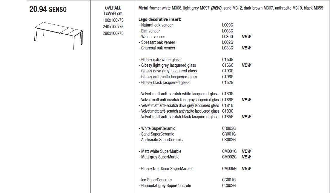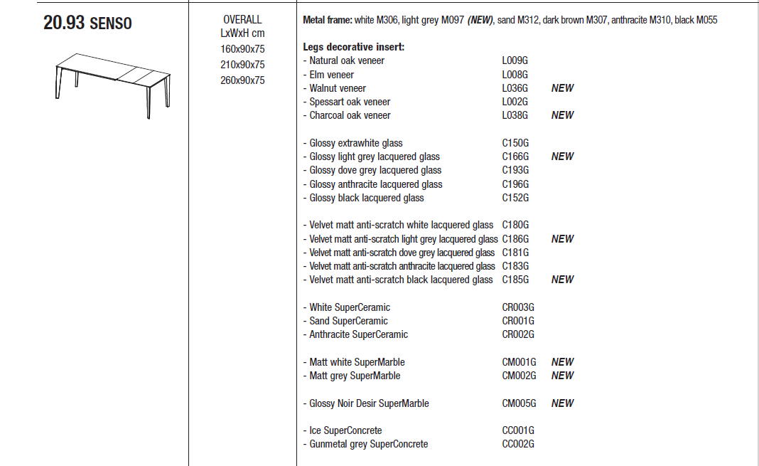 Stół włoski SENSO - stół rozkładany; stół jest dostępny w 3 rozmiarach; Stół polecany do nowoczesnych i klasycznych jadalni jak i kuchni. Nogi i rama metalowa. Blat: najwyższej jakości melamina, laminat Fenix, anty-scratch Unicolor, okleina, szkło matowe antyrefleksyjne, SuperCeramic, SuperMarble i SuperConcrete.