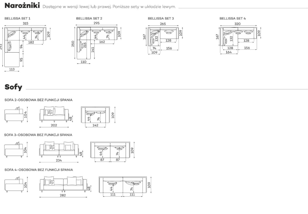 Najważniejszym elementem Bellissa są bardzo wygodne, miękkie siedziska, specjalne marszczenia, zewnetrzne przeszycia i piękne nóżki.
