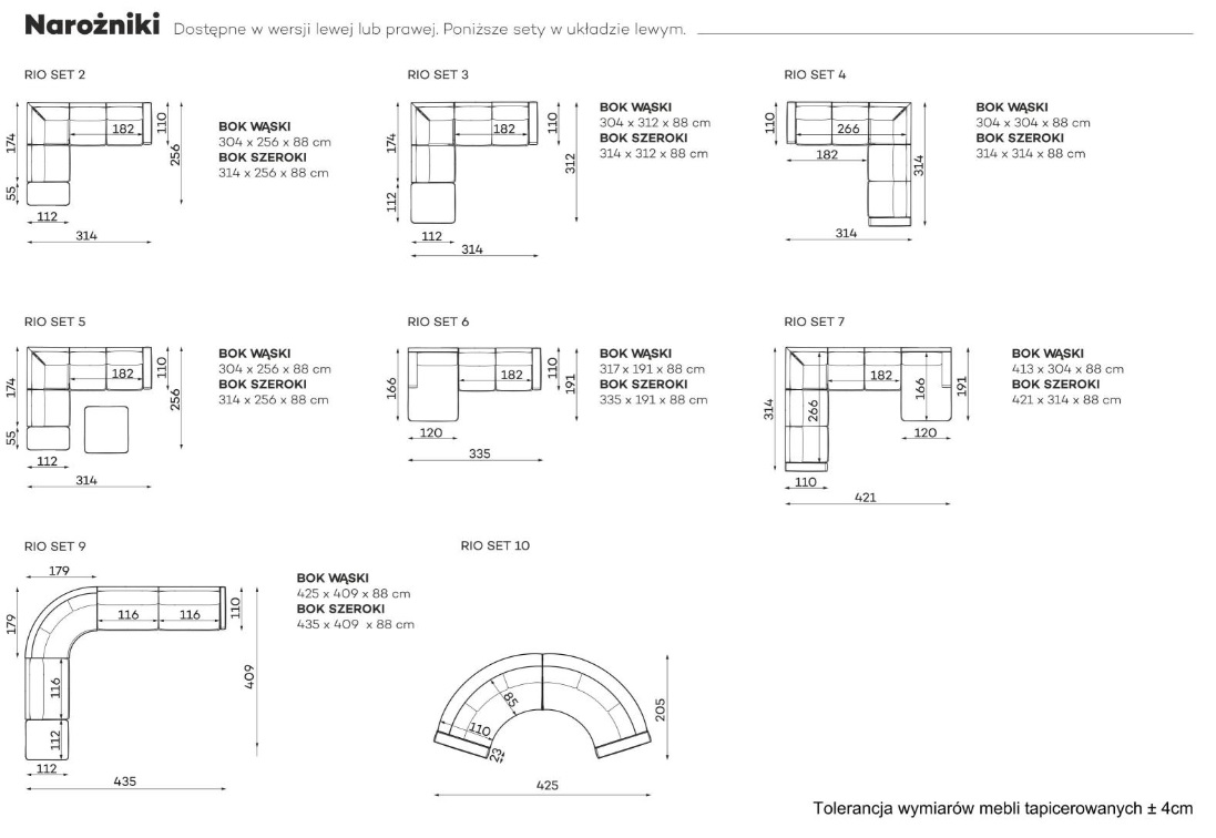 Rio wymiar 304x256cm prawy/lewy