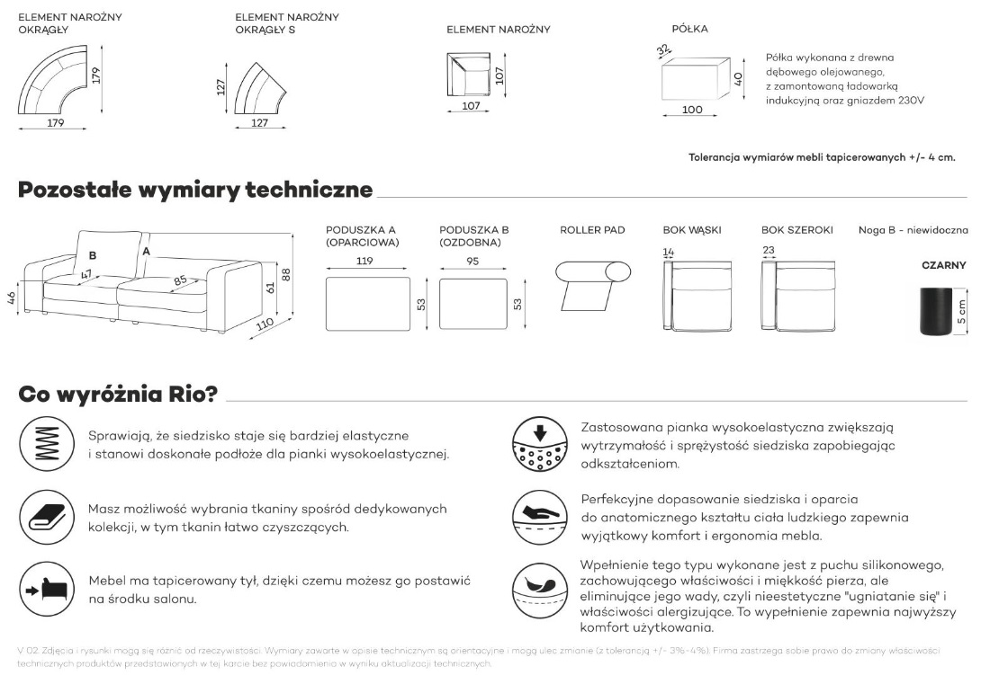 Gabaryty modelu oraz harmonijny system modułów, pozwala na swobodne zarządzanie każdym z nich. Poszczególne segmenty dają szerokie możliwości zaprojektowania mebla idealnie dopasowanego do potrzeb użytkownika. Model Rio może być sofą, narożnikiem lub olbrzymią kanapą. Dzięki temu w sposób przemyślany i spójny zaaranżujesz wnętrze, maksymalnie wykorzystując jego potencjał i przestrzeń.
